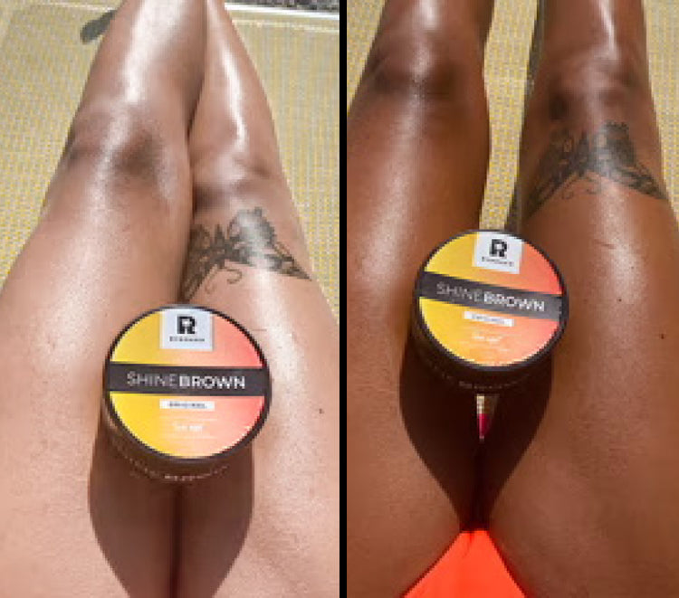Elevate your tan with our mouth-watering orange-scented Shine Brown oil that transforms your skin into a rich, glowing bronze.